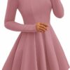 - DESIGNS: The Womens Dresses Features Long Sleeve, High Waist And Flared A-Line, Making You Look Intellectual And Elegant. The Knee Length Shows Off Your Long Legs And Swing Pleated Hem Adds More Playfulness To This Elegant Dresses For Women
