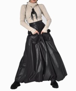 Discover our stunning Black High Waisted Skirt Ro9, a statement piece that combines sophisticated style with modern design elements. This luxurious maxi skirt features a sleek leather-look finish that adds an element of edgy refinement to any outfit.