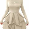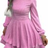 - Features: Long sleeve, mock neck, solid, ruffle hem, A line, high waist mini dress for women