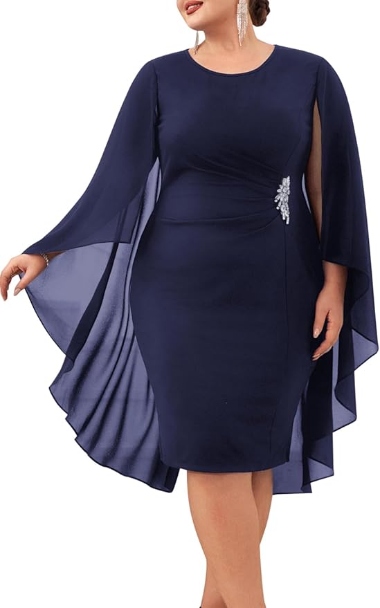 - Material: Main Fabric: 95%Polyester+5%Elastane, Chiffon Capelet: 98%Polyester+2%Viscose, this plus size wedding guest dresses is made of comfy and high quality fabric, soft touching, stretchy, comfortable and lightweight to wear, perfect for all seasons.