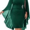 - Features: Plus size ruched pencil dress features chiffon capelet, crew neck, removable rhinestones, sleeveless with chiffon capelet design, hidden zipper on the back, this bodycon midi dress making you look even more sparkly in the crowd.