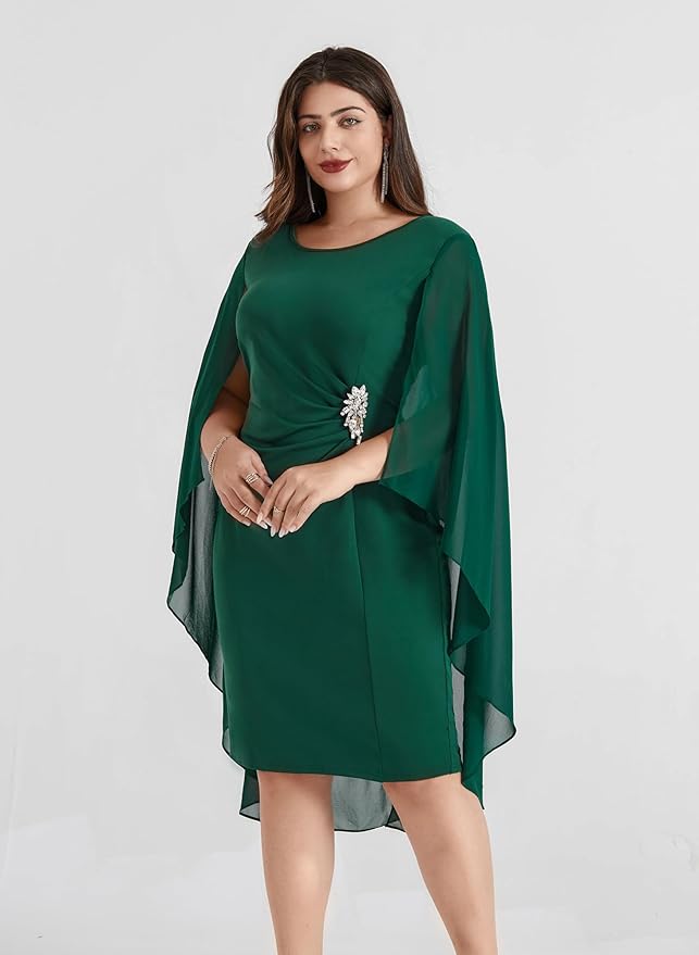 - Material: Main Fabric: 95%Polyester+5%Elastane, Chiffon Capelet: 98%Polyester+2%Viscose, this plus size wedding guest dresses is made of comfy and high quality fabric, soft touching, stretchy, comfortable and lightweight to wear, perfect for all seasons.