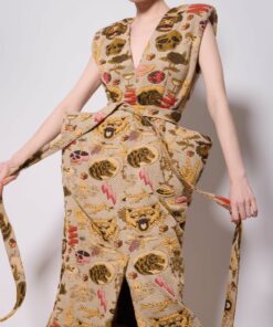Make a distinctive style statement with our Regal Jacquard Belted Midi Dress Ro5, a conversation-starting piece that blends artistic patterns with a classic silhouette. This remarkable dress features an eye-catching print against a warm neutral background for a look that’s both sophisticated and playfully unique.